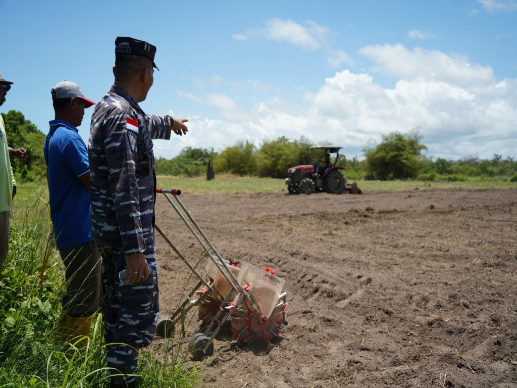 Guna mensukseskan program pusat ini, Komandan Kodaeral XI harus turun ke lapangan. Bukan hanya memantau tapi terlibat dalam melakukan penanaman kedelai.