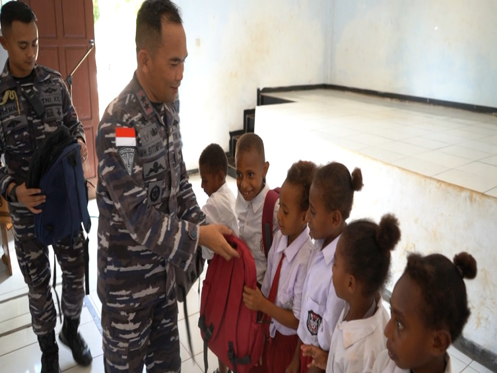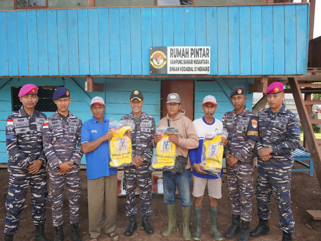 Kesempatqn yang sama, Komandan Kodaeral XI bersama jajarannya membagikan 20 sepatu bots bagi kelompok tani, pembagian 41 paket belajar berupa tas dan alat tulis bagi siswa di sekolah serta bakti sosial lainnya yang juga dilakukan di Kumbe. Termasuk meninjau dan melakukan pengujian speedboat buatan masyarakat lokal.(Get)