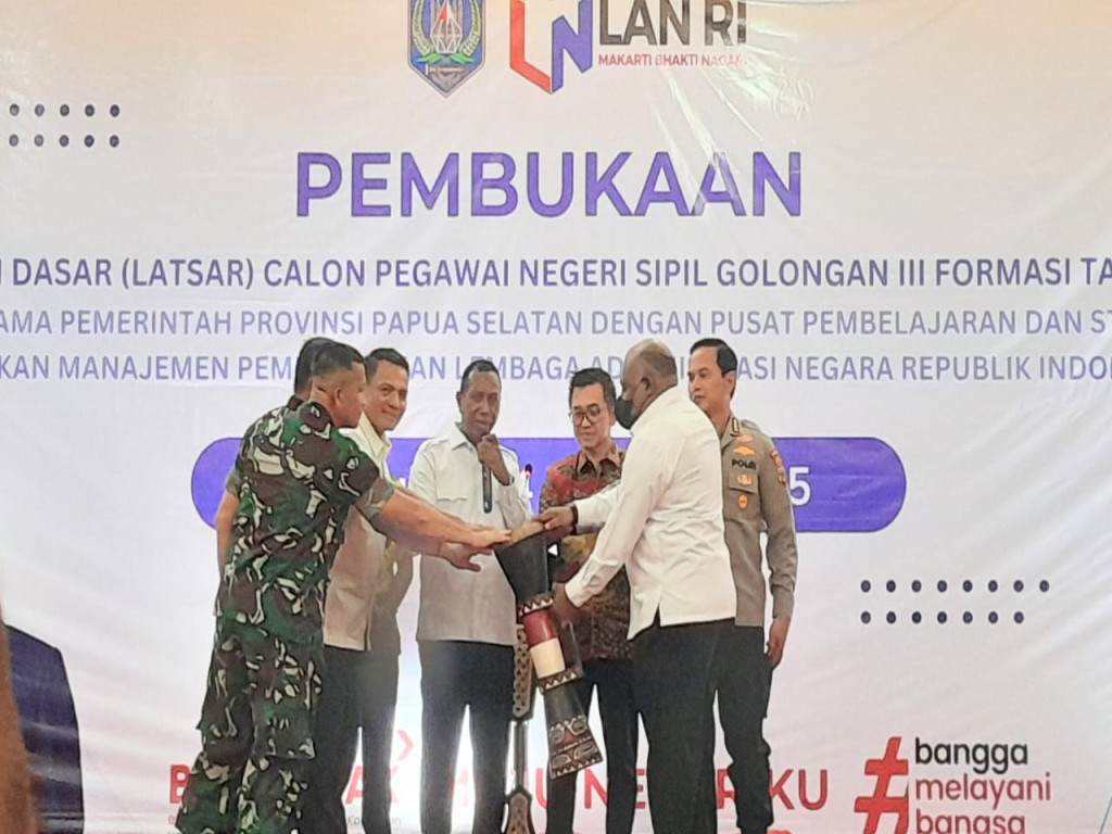 Lasar ini kerjasama pemerintah provinsi dengan pusat pembelajaran dan strategi kebijakan manajemen pemerintahan lembaga administrasi negara Republik Indonesia, Sabtu, (4/10/2025) di Gor Hiad Sai Merauke.