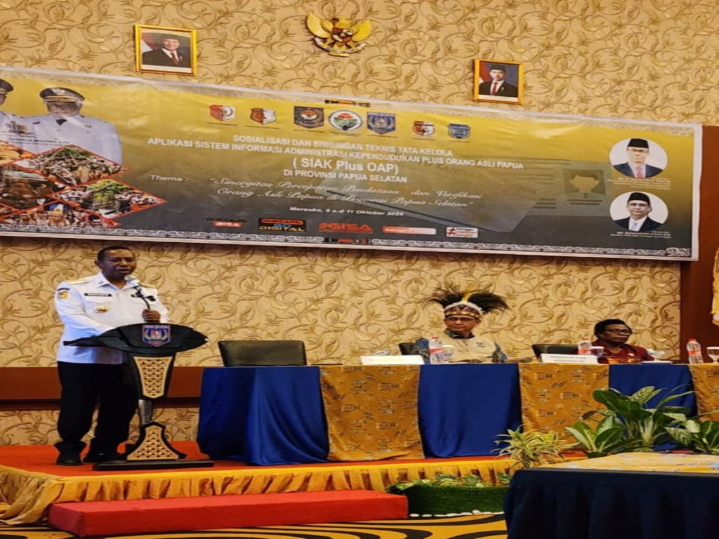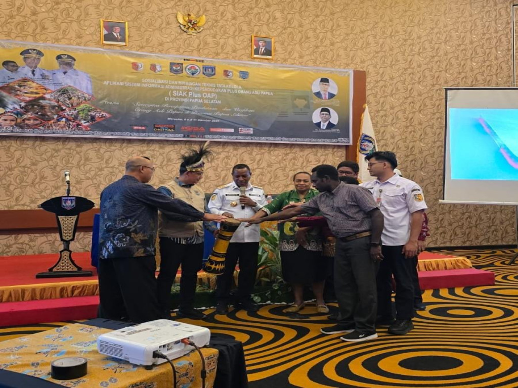 Peluncuran berlangsung di sela-sela Sosialisasi dan Bimbingan Teknis (Bimtek) tata kelola aplikasi sistem informasi SIAK Plus OAP Papua Selatan di Swissbel-hotel Merauke, Kamis (9/10/2025).