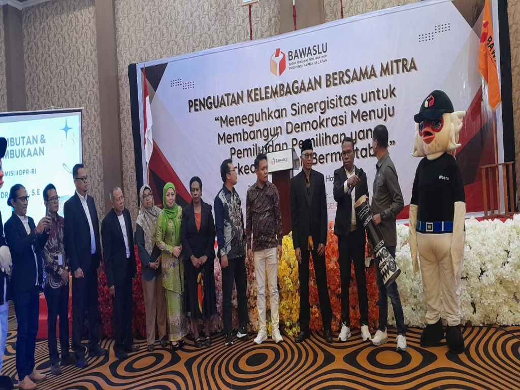 Merauke - Bawaslu Papua Selatan menyelenggarakan forum penguatan kelembagaan bersama mitra dengan tema, meneguhkan sinergitas untuk membangun demokrasi menuju Pemilu dan pemilihan yang berkeadilan dan bermartabat.
