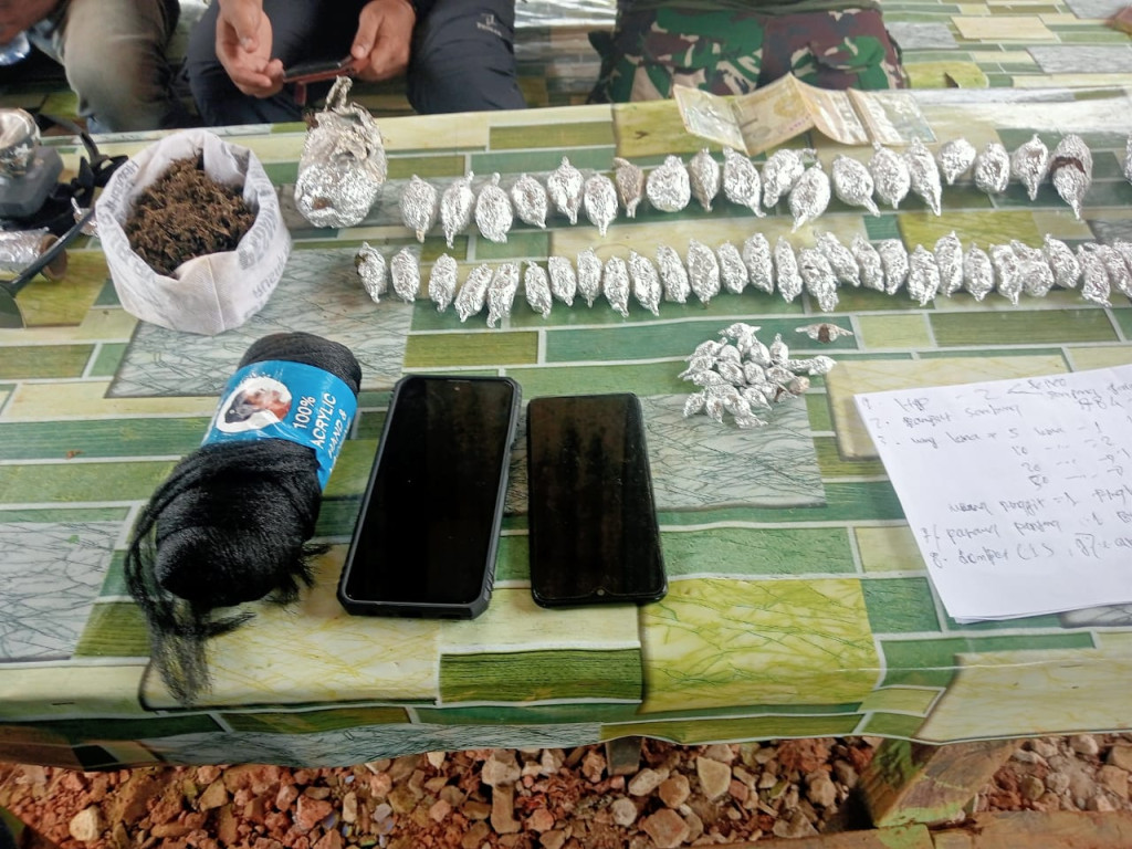 Ganja kering itu dikemas dalam berbagai ukuran, selain itu juga diamankan tiga unit handphone, dua unit sepeda motor, uang asing (kina), serta beberapa perlengkapan pribadi milik pelaku.