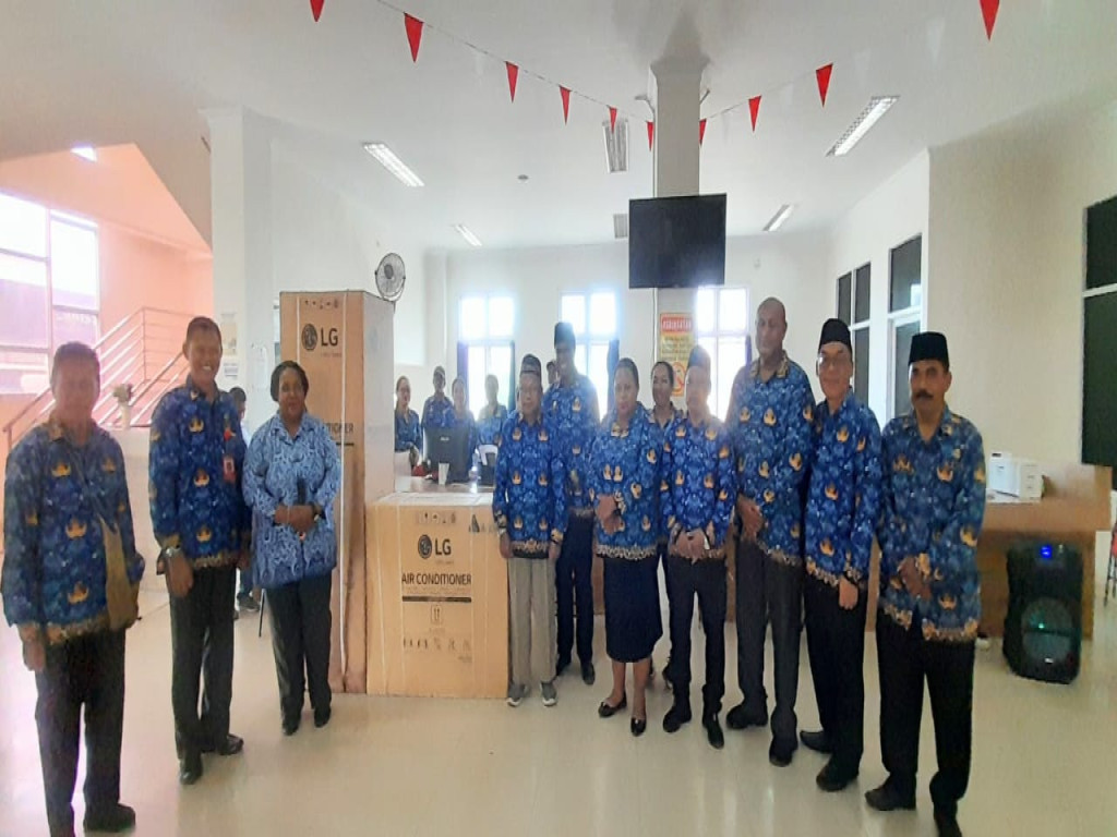 Kesempatan tersebut panitia HUT Korpri sekaligus menyerahkan bantuan AC untuk kenyamanan pelayanan di Dinas Kependudukan dan Pencatatan Sipil.