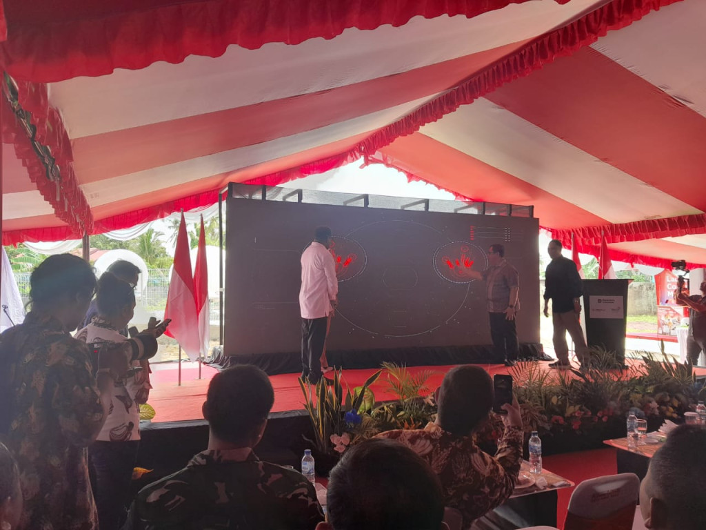 Peresmian Community Gateway Telkomsat Merauke melalui hand scan layar videotron.