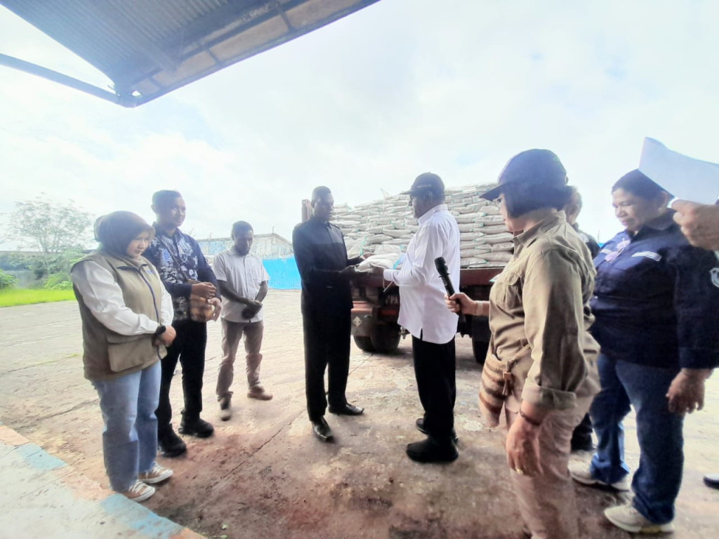 Kegiatan ditandai dengan penyerahan beras secara simbolis kepada tiga kepala distrik yang menjadai sasaran bantuan tetsebut.(Get)