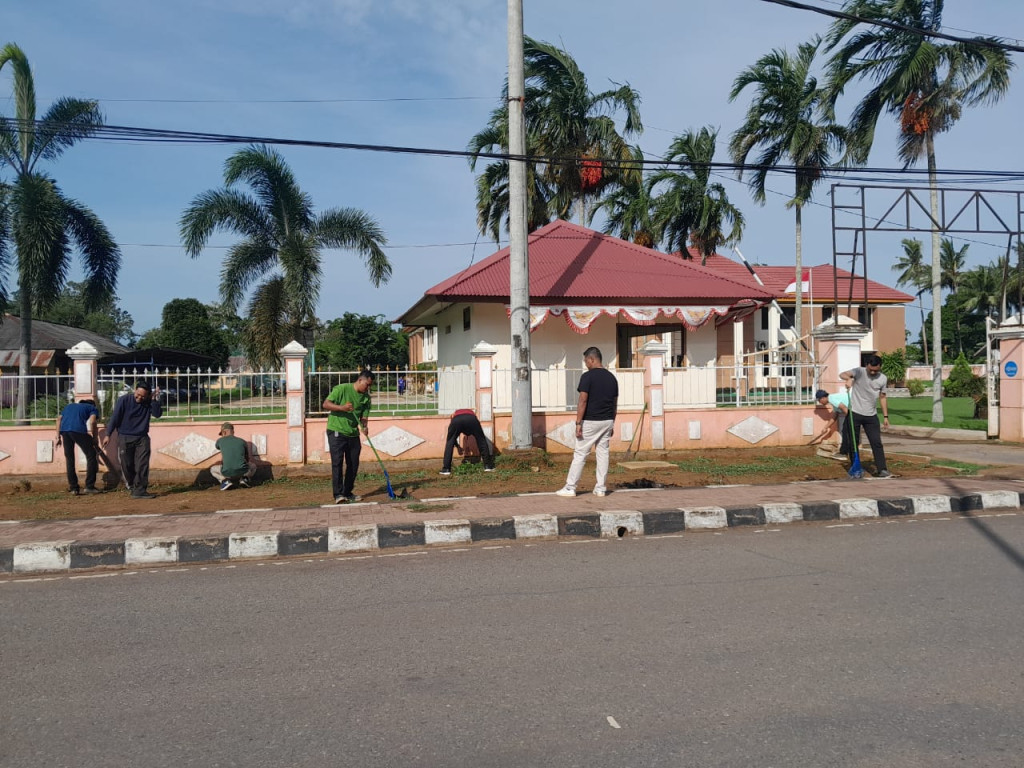 Merauke - Pemerintah Kabupaten (Pemkab) Merauke dan seluruh pihak melakukan pembersihan sampah dan rumput di berbagai titik yang sudah dibagi.