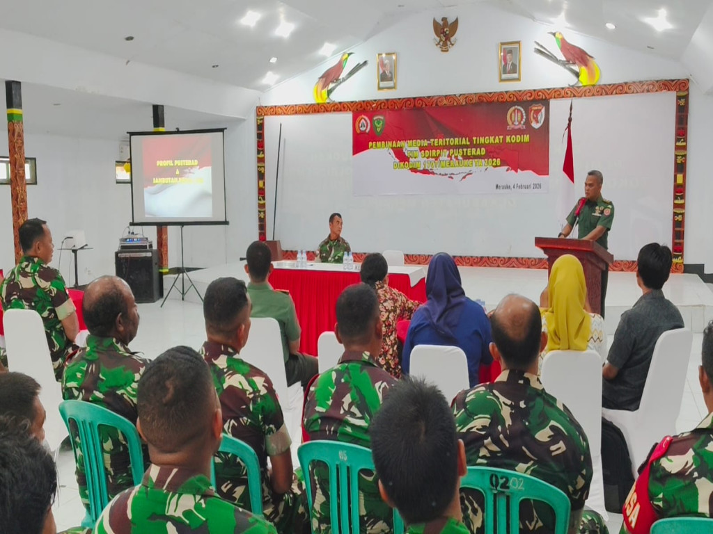 Merauke - Staf Direktur Pusat Informasi Teritorial Pusta Teritorial Angkatan Darat (SDIRPIT PUSTERAD) melakukan Pembinaan Media Teritorial di Kodim 1707/Merauke, Rabu, (4/2/2026). Melibatkan Dinas Kominfo Kabupaten Merauke, Bidang Humas Pemkab Merauke, perwakilan media massa dan para Babinsa Kodim 1707/Merauke.
