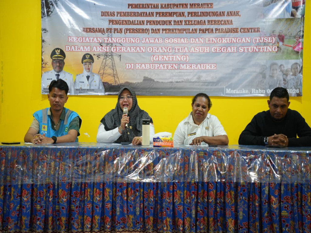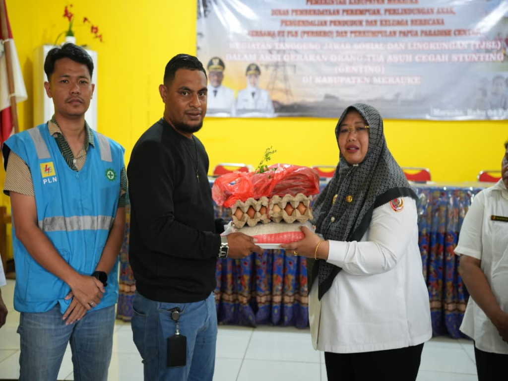 Merauke - Upaya bersama untuk menanggulangi stunting di Kabupaten Merauke terus diperkuat melalui kolaborasi antara PT PLN (Persero), Papua Paradise, serta Dinas Pemberdayaan Perempuan, Perlindungan Anak, Pengendalian Penduduk, dan Keluarga Berencana Kabupaten Merauke dalam program Gerakan Orang Tua Asuh Cegah Stunting (GENTING).
