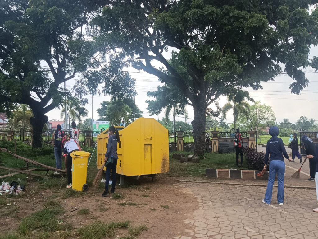 Penyerahan tempat sampah plastik dan kerja bakti di halaman Masjid Raya Al Aqsha Merauke