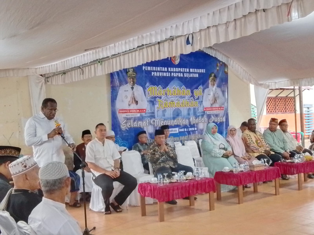 Merauke - Pemkab Merauke mengawali Safari Ramadhan 1447 Hijrah/2026 Masehi di Masjid Jami Kota Merauke, Minggu, (1/3/2026).