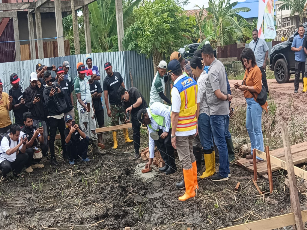 Merauke - Bupati Merauke Yoseph Bladib Gebze melakukan peletakan batu pertama fondasi pembangunan 39 perumahan subsidi SS Kuprik Jaya di Tujuh Wali Wali Merauke, Rabu, (18/3/2026).