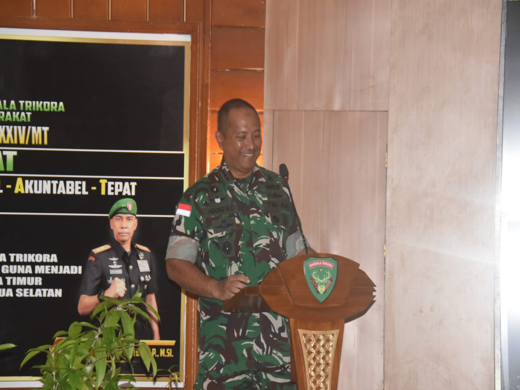 Merauke - Asisten Teritorial (Aster) Kasdam XXIV/Mandala Trikora, Kolonel Kav Agung Nur Cahyono, S.I.P., M. Tr (Han) memimpin pelaksanaan Rapat Kerja Teknis Teritorial (Rakernister) Tahun Anggaran 2026 yang digelar di Ruang Rapat Trikora, Makodam XXIV/MT, Papua Selatan.