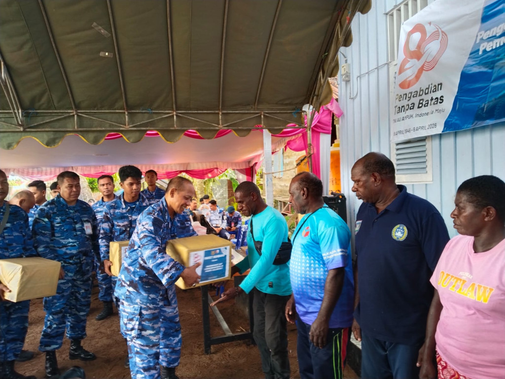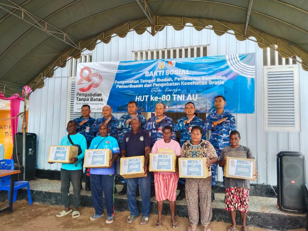 Merauke - Dalam rangka menyambut HUT ke-80 TNI AU tahun 2026, Lanud Johan Abram Dimara melakukan bakti sosial di Gereja Pos PI Agape Kaliweda 1 Merauke.